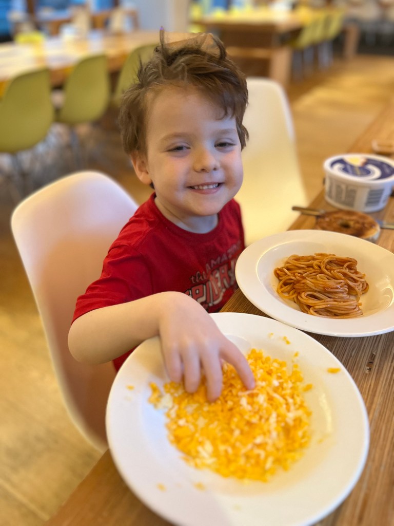 It’s common for kids in the first phase of treatment (induction) to have a voracious appetite and I’d experienced that last week, but the last couple days have been next level! Today it was spaghetti at 8am he was craving but he woke up craving breadsticks on Friday chemo infusion day, so that was our reward. He ate an entire sleeve of BBQ Pringles affectionately mis-called “Spring roll chips” and the last two nights he’s woken at 3am with a whispered “mama I’m hungry” and he ate an entire Lunchable and slice of pizza one night and a rice cake, cookies, and more chips the other!! The other parents in our kitchen cohort laugh because they have all had the same moments. One mom’s kid was obsessed with Mr. Noodles with “super stinky cheese” and the other one was ketchup chips! A nurse told me one kid’s mom was lamenting that her son was obsessed with crab! How bougie!